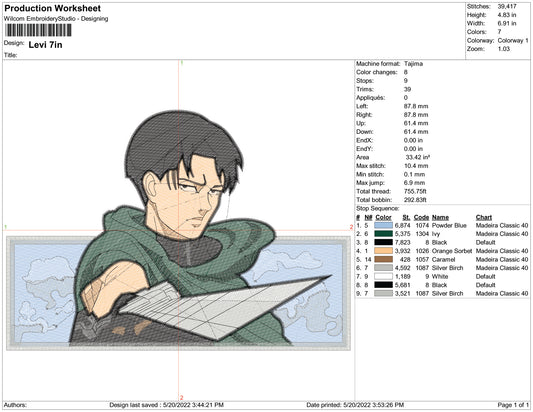 Levi Ackerman v7 Embroidery Design Files - 5 Size's