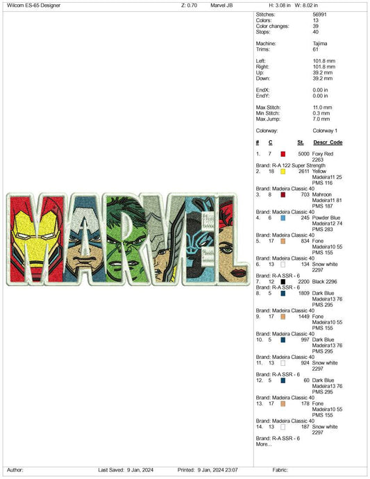 Archivos de diseño de bordado de Marvel - 3 tamaños