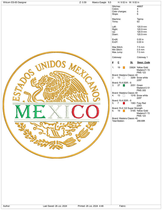 Archivos de bordado del logotipo de Estados Unidos de México - 3 tamaños