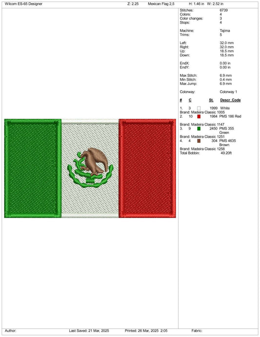 Archivos de diseño de bordado de la bandera de México - 3 tamaños