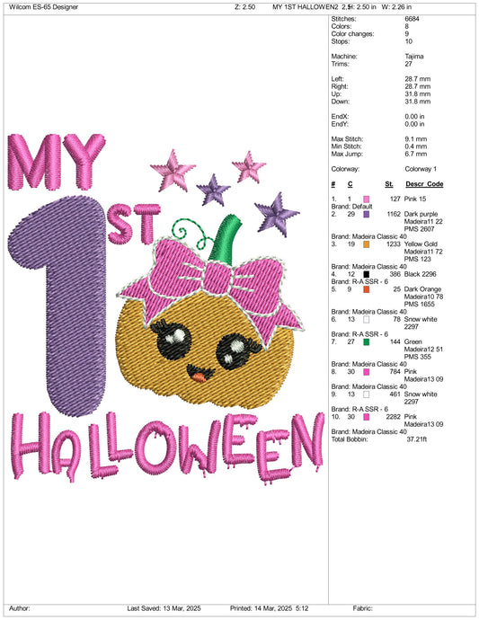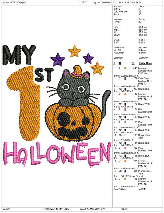 Archivos de diseño de bordado de mi primer Halloween v2 (3 tamaños)