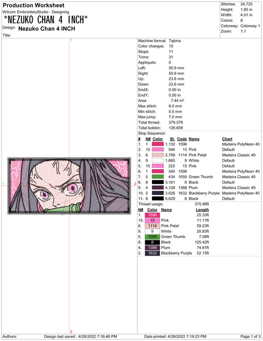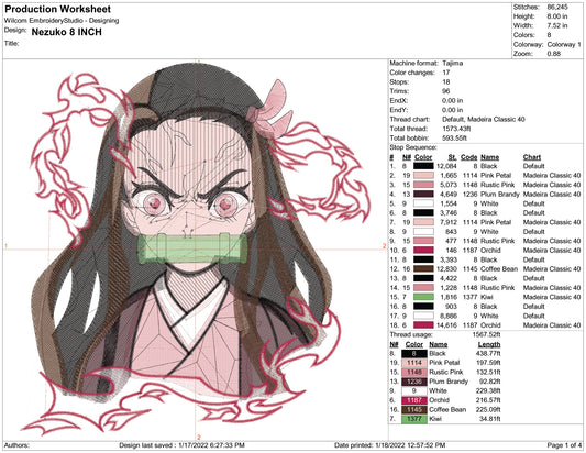 Nezuko Kamado v8 Embroidery Design Files - 4 Size's