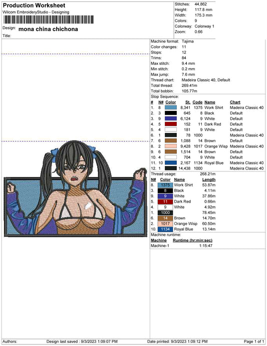 Nico Yazawa Bikini Embroidery Design Files - 3 Sizes