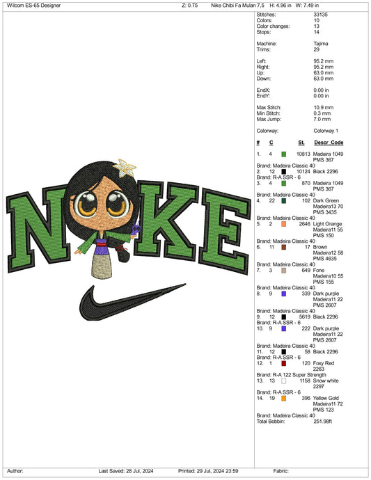 Archivos de diseño de bordado Nike Chibi Mulan (3 tamaños)