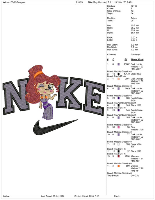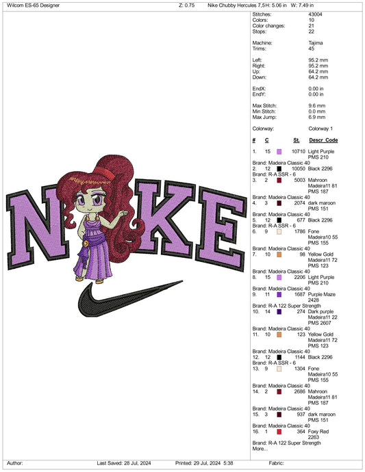 Archivos de diseño de bordado Nike Chibi Megara (3 tamaños)
