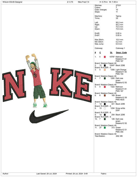 Archivos de diseño de bordado Nike Fred Frederickson - 3 tamaños