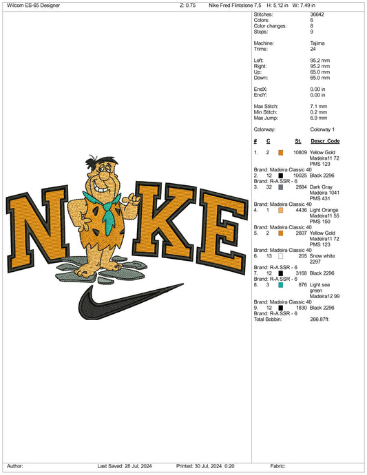 Archivos de diseño de bordado de Nike de Fred Flintstone (3 tamaños)