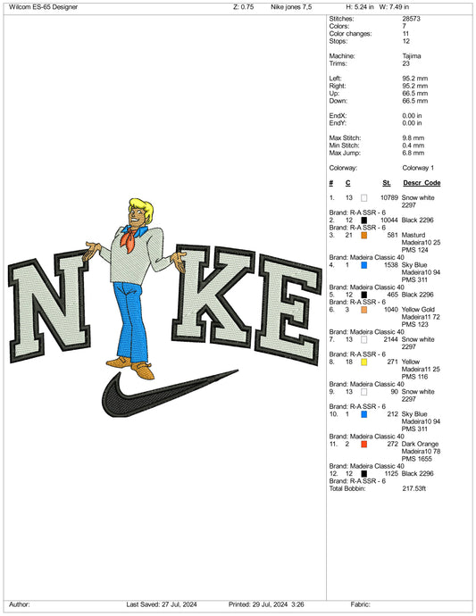 Archivos de diseño de bordado Nike Fred Jones - 3 tamaños