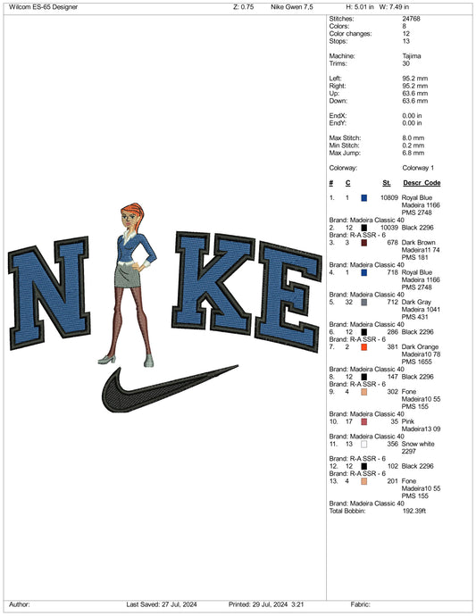 Archivos de diseño de bordado de Nike Gwen Stacey (3 tamaños)
