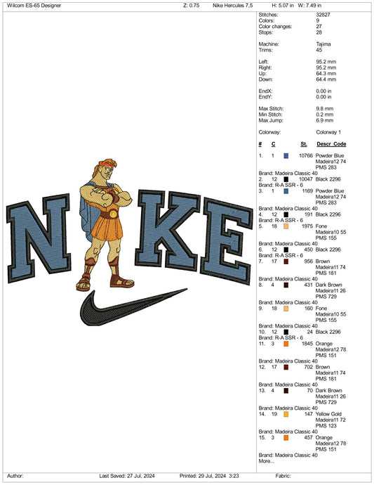 Archivos de diseño de bordado Nike Hercules - 3 tamaños