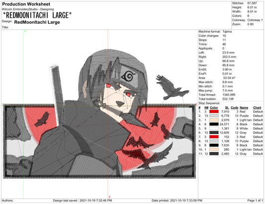 Red Moon Itachi Embroidery Design Files - 4 Size's