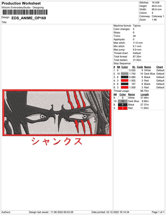 Red Haired Shanks Embroidery Design Files - 3 Sizes