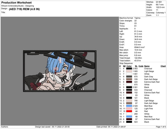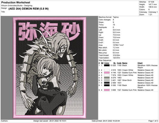 Rem Demon Embroidery Design Files - 5 Sizes