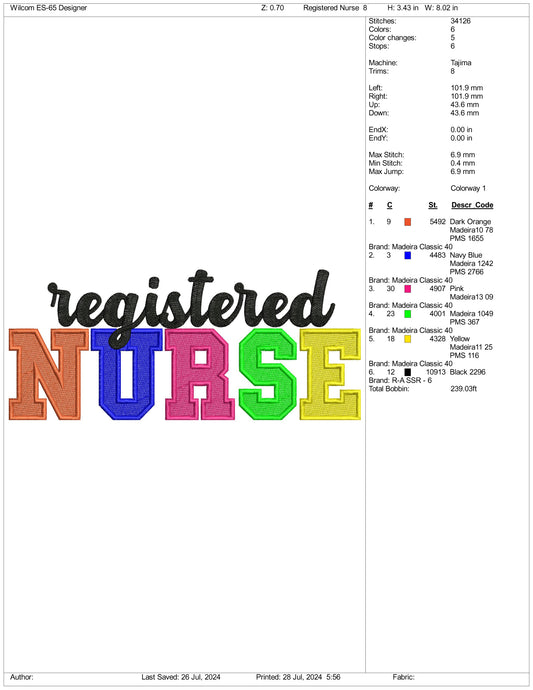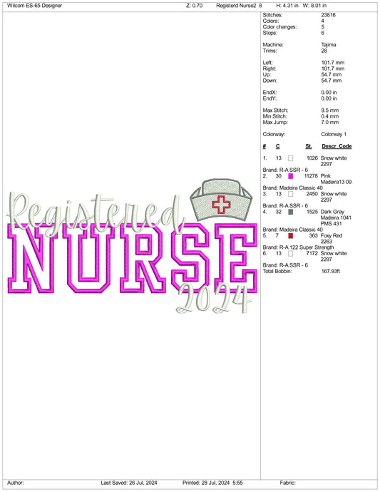 Archivos de bordado para enfermeras registradas 2024 (3 tamaños)