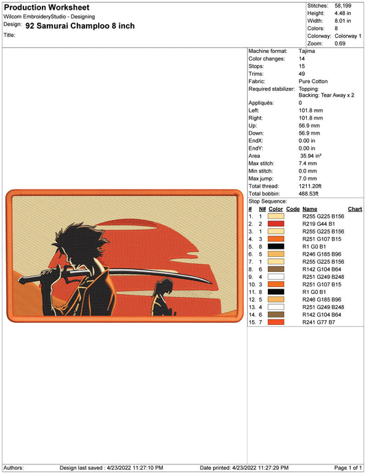 Samurai Champloo Embroidery Design Files - 5 Sizes