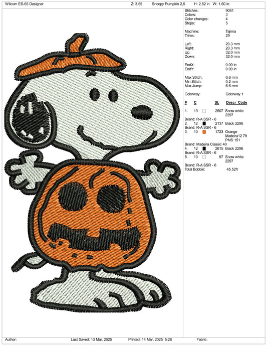 Archivos de bordado de calabaza de Snoopy - 3 tamaños