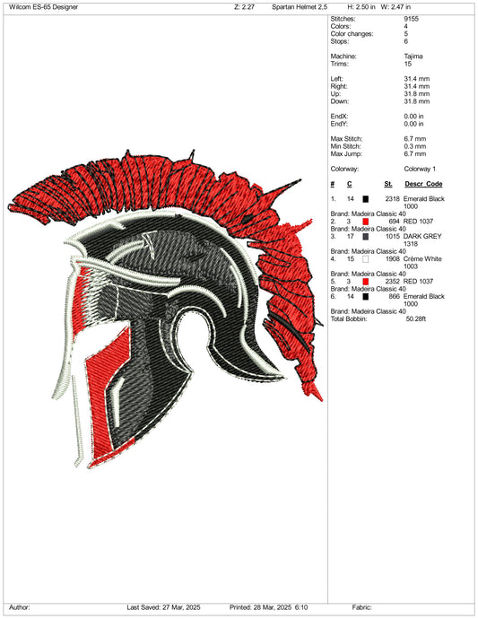 Spartan Helmet Embroidery Design Files - 3 Size's