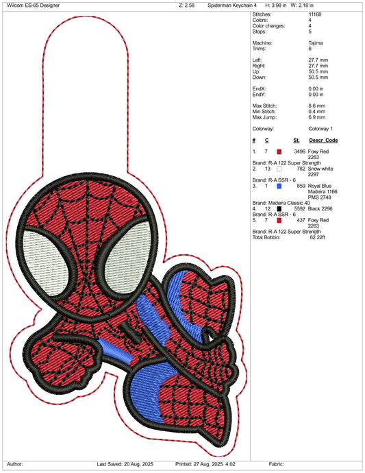 Spider Man Keychain Embroidery Design Files - 3 Size's