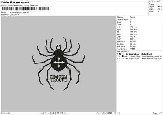 Spider Phantom Troupe Embroidery Design Files - 4 Size's