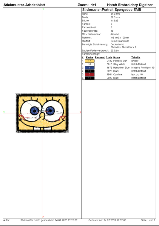 SpongeBob v2 Embroidery Design Files - 1 Size