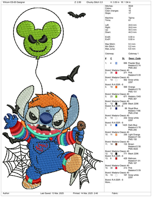 Stitch Boogeyman Embroidery Design Files - 3 Size's