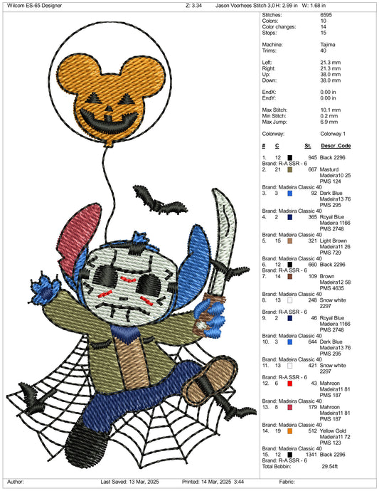 Archivos de bordado de Jason Voorhees para cosplay de Stitch (3 tamaños)