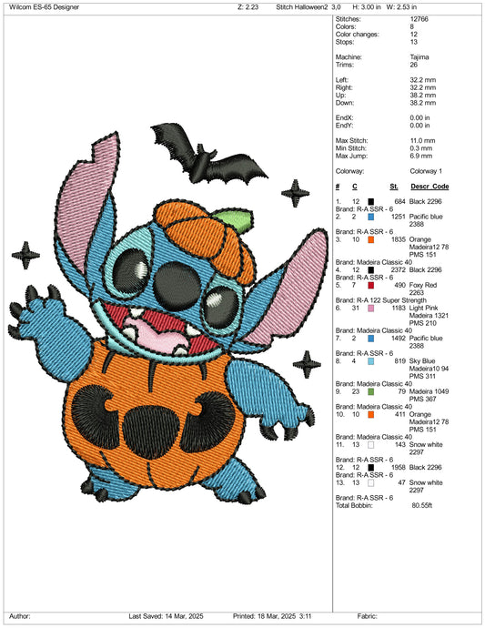 Archivos de bordado de calabaza de Stitch para cosplay (3 tamaños)