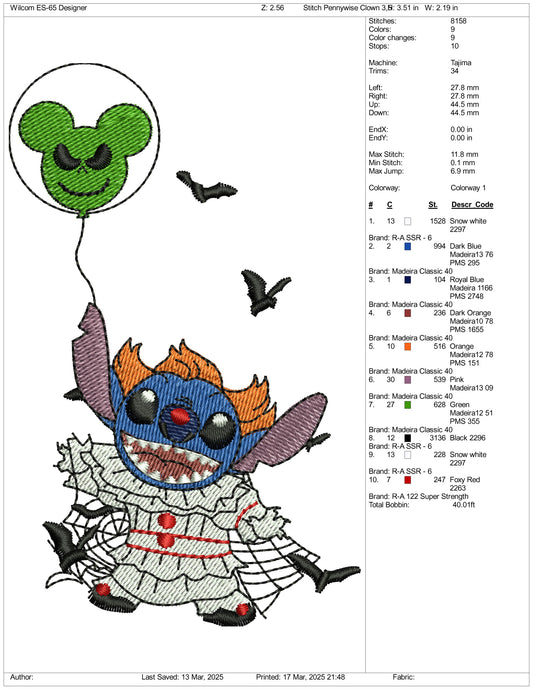 Archivos de bordado de Stitch Clown - 3 tamaños