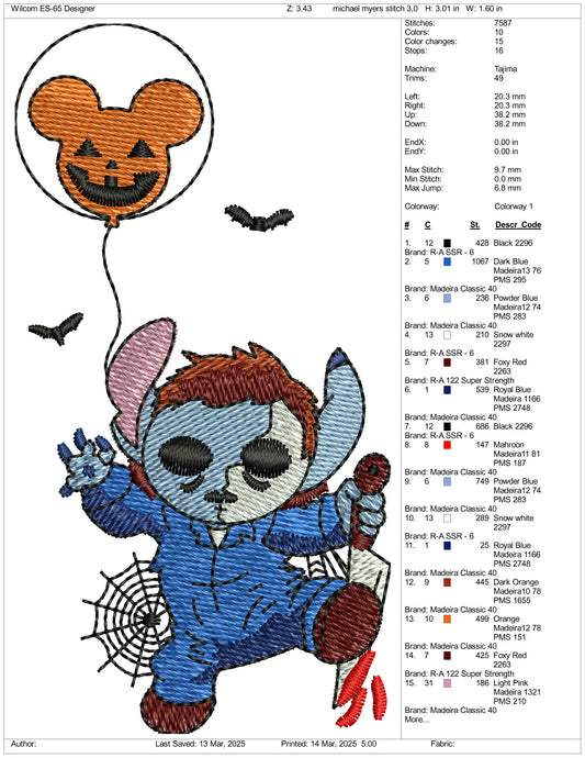 Archivos de bordado de Michael Myers para cosplay de Stitch (3 tamaños)