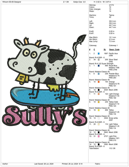 Archivos de bordado de vacas de Sullys - 3 tamaños