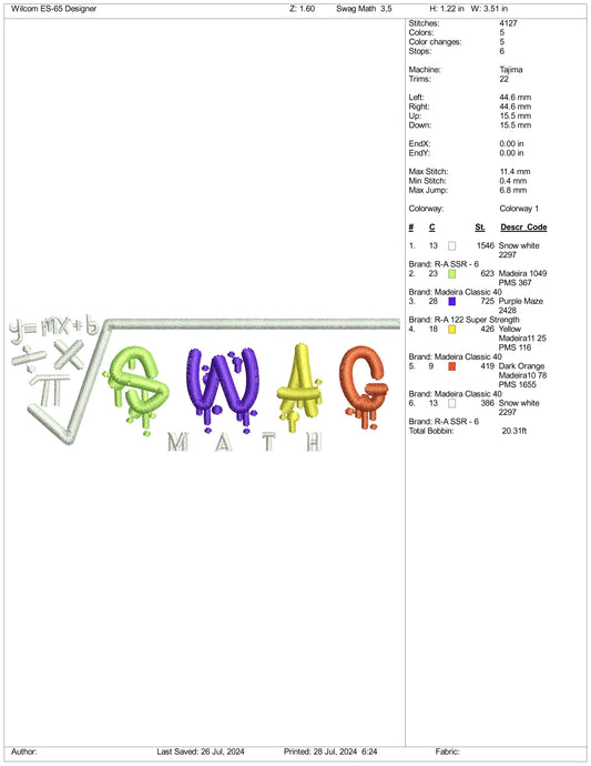 Archivos de bordado Swag Math - 3 tamaños