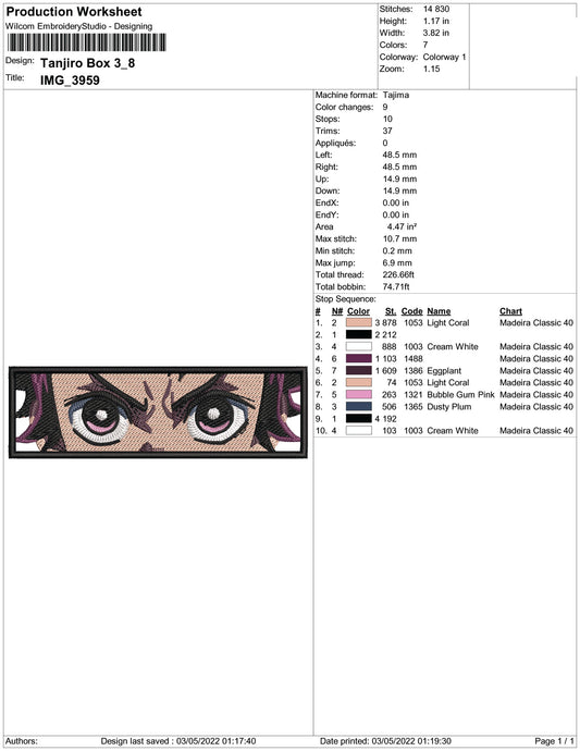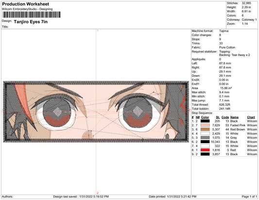 Tanjiro Kamado Eyes Embroidery Design Files - 3 Size's