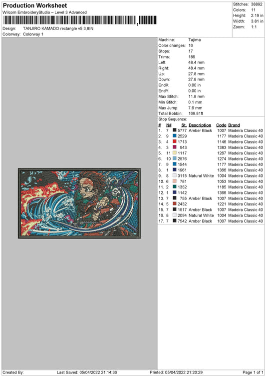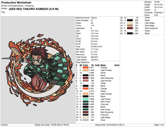 Tanjiro Kamado v2 Embroidery Design Files - 4 Size's