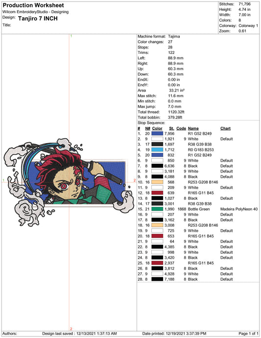 Tanjiro Kamado v7 Embroidery Design Files - 4 Size's