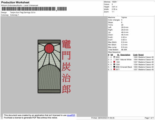Tanjiro Sun Flag Earrings Embroidery Design Files - 4 Size's