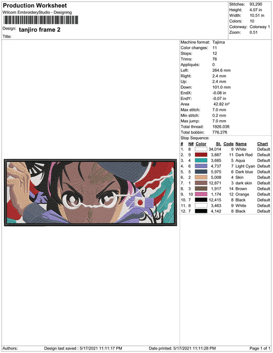 Tanjiro Kamado v8 Embroidery Design Files - 4 Size's