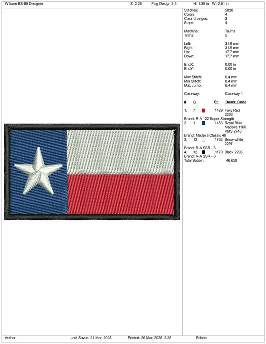Archivos de diseño de bordado de la bandera de Texas - 3 tamaños