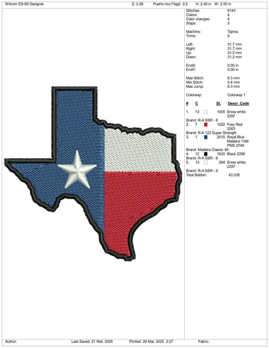 Archivos de diseño de bordado de la bandera del mapa de Texas - 3 tamaños