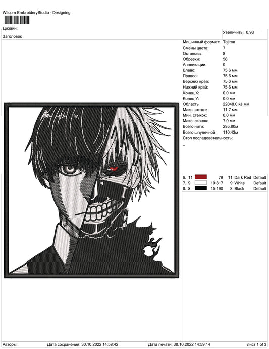 Tokyo Ghoul Embroidery Design Files - 1 Size's