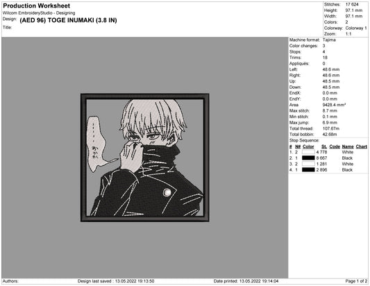 Toge Inumaki Embroidery Design Files - 4 Size's