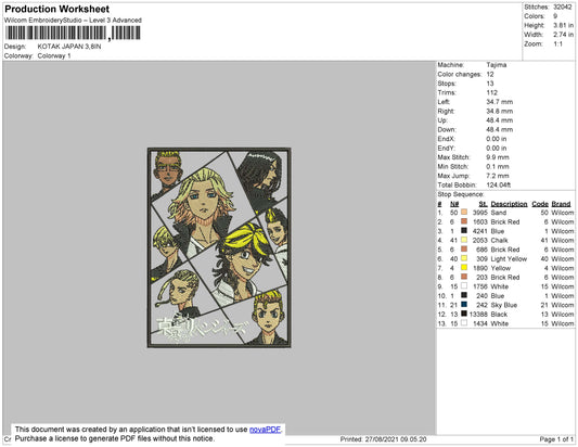 Tokyo Revengers All Embroidery Design Files - 4 Size's