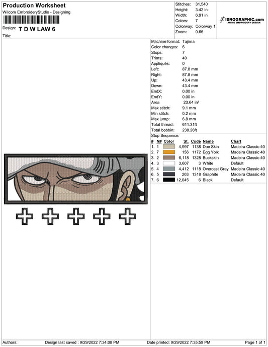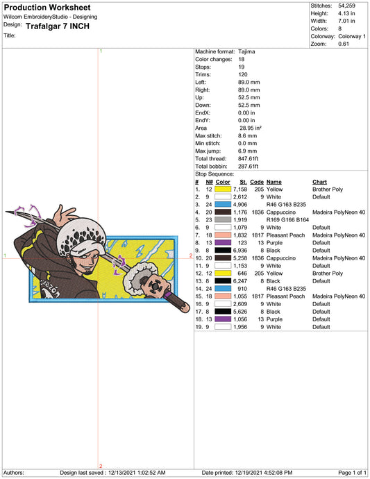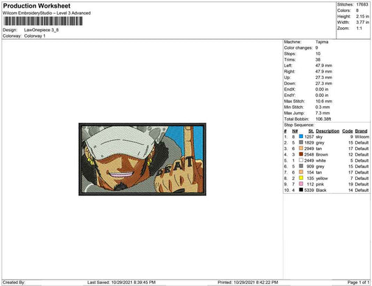 Trafalgar Law Embroidery Design Files - 4 Size's