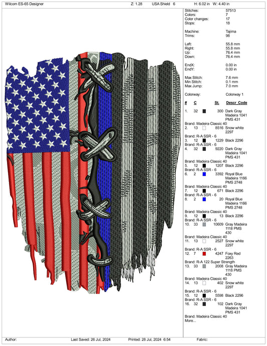 Archivos de diseño de bordado de la bandera de bomberos de EE. UU. (3 tamaños)