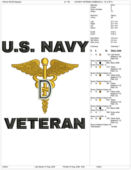US Navy Veteran v2 Embroidery Design Files - 3 Size's