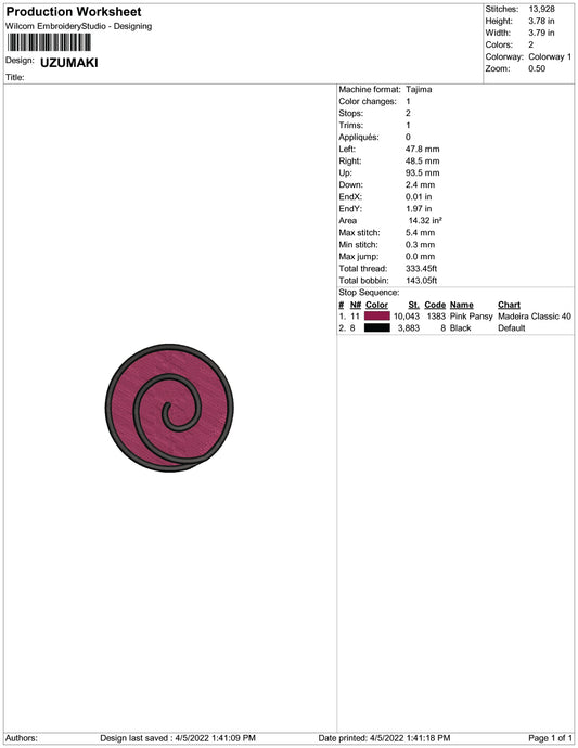 Uzumaki Logo Embroidery Design Files - 1 Size