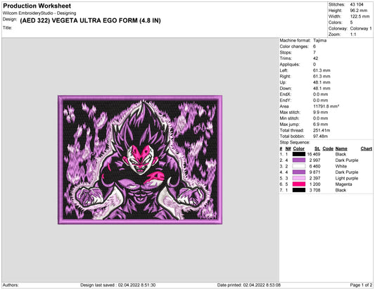 Vegeta Ultra Ego Form Embroidery Design Files - 4 Size's