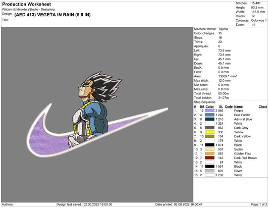 Vegeta In Rain Swoosh Embroidery Design Files - 4 Size's