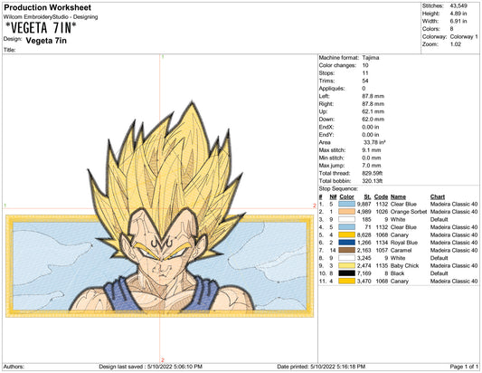 Archivos de diseño de bordado de Vegeta - 3 tamaños