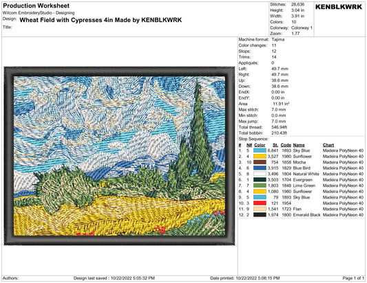 Wheat Field with Cypresses Embroidery Design Files - 2 Size's