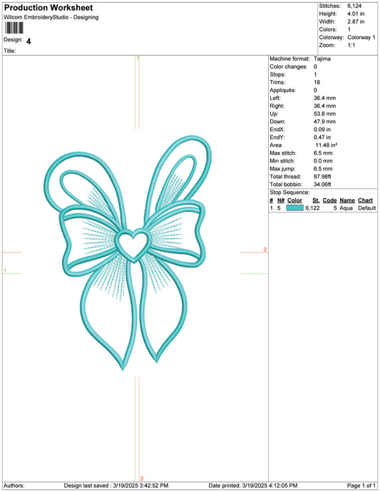 Whimsical Heart Bow Embroidery Design Files - 9 Size's